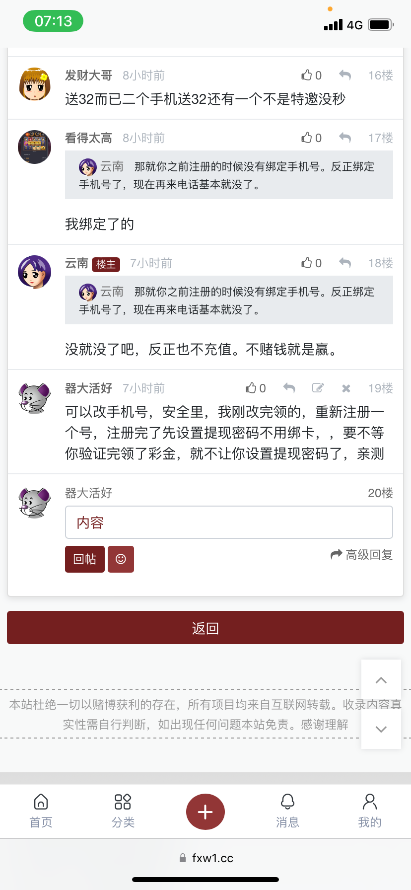 我要嫖回本 踏马的,我也是以小博大,我任何那些免费彩金我都没领,为什么tmd我打上了200提现,他们现在过去三个小时了,我操tmd还不到帐,一点逼眼动静没有,客服又他妈跟被埋了一样