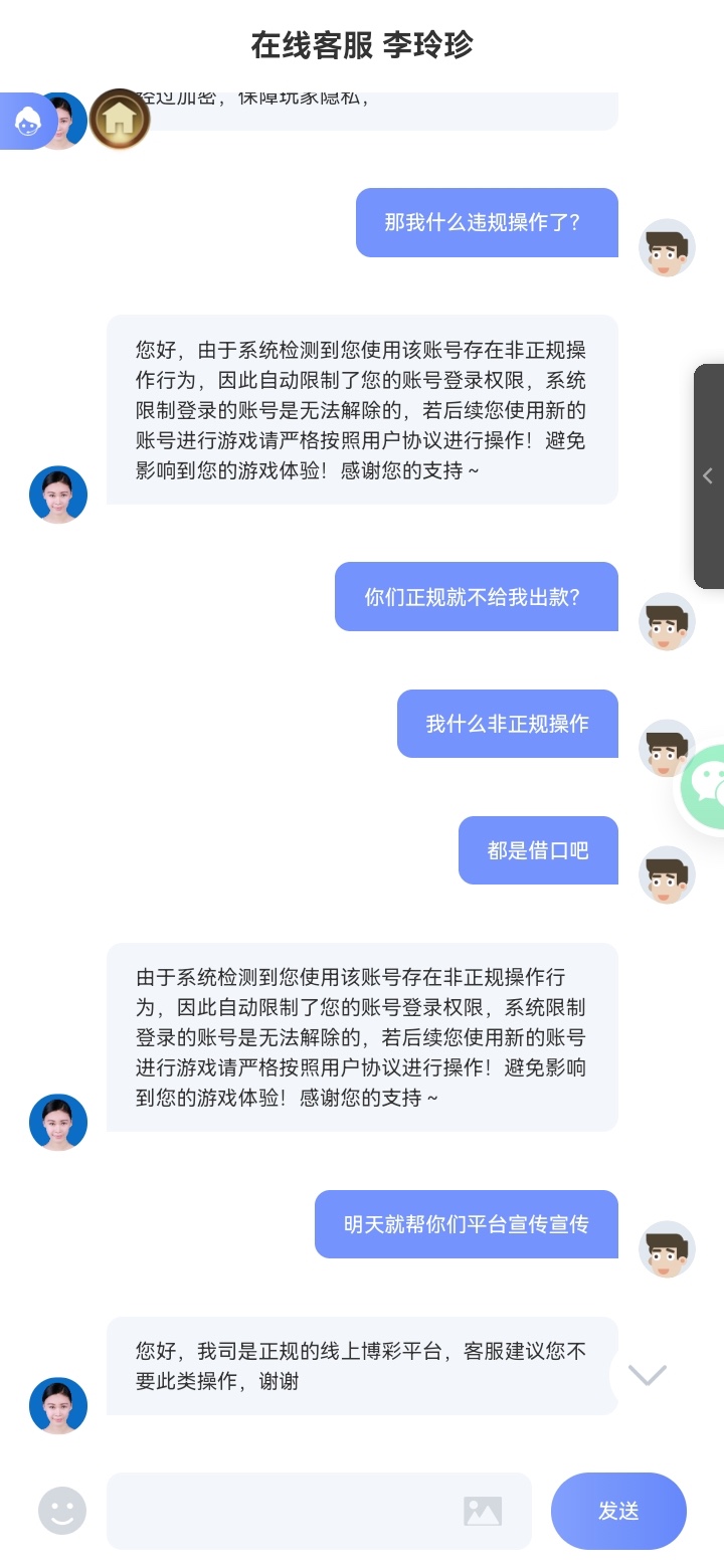 首先呢,我先说一下我是怎么接触到的呢,我是3月份在朋友圈看到有个老铁在发推广二维码。说撸羊毛。充一百赢了多少我提现输了包赔一百。我想着这个输了还包赔。就下载进去充了一百玩了一下。当时一下子就赢了7百多。心里特别高兴。马上提现了,之后就没玩了。因为疫情嘛。收入比较低。然后呢就想着再进去试试。充了300块。半个小时不到就赢了一千2。当时我觉得我可能要走向人生巅峰了。3月份陆续玩了一个月赢了两万多。那时候才是噩梦的开始。赢得多了自然胆子也大了起来。押注冲刚开始的10块20块变成了100,500 1000。下注大了之后就开始输钱了。我想着可能是今天运气不好。后面以为有规律了。然后开始几千几万的下。想把输得钱赚回来。奈何被庄家各种控制点杀。越玩越输。越输越玩。一步步走向了深渊。负债了好几十万。短短2个月。人都是贪婪的。挣一百想挣两百。而庄家就是抓住了人的这个心理。所以天天在这里奉劝大家远离网络赌博。不然只会被吞噬。