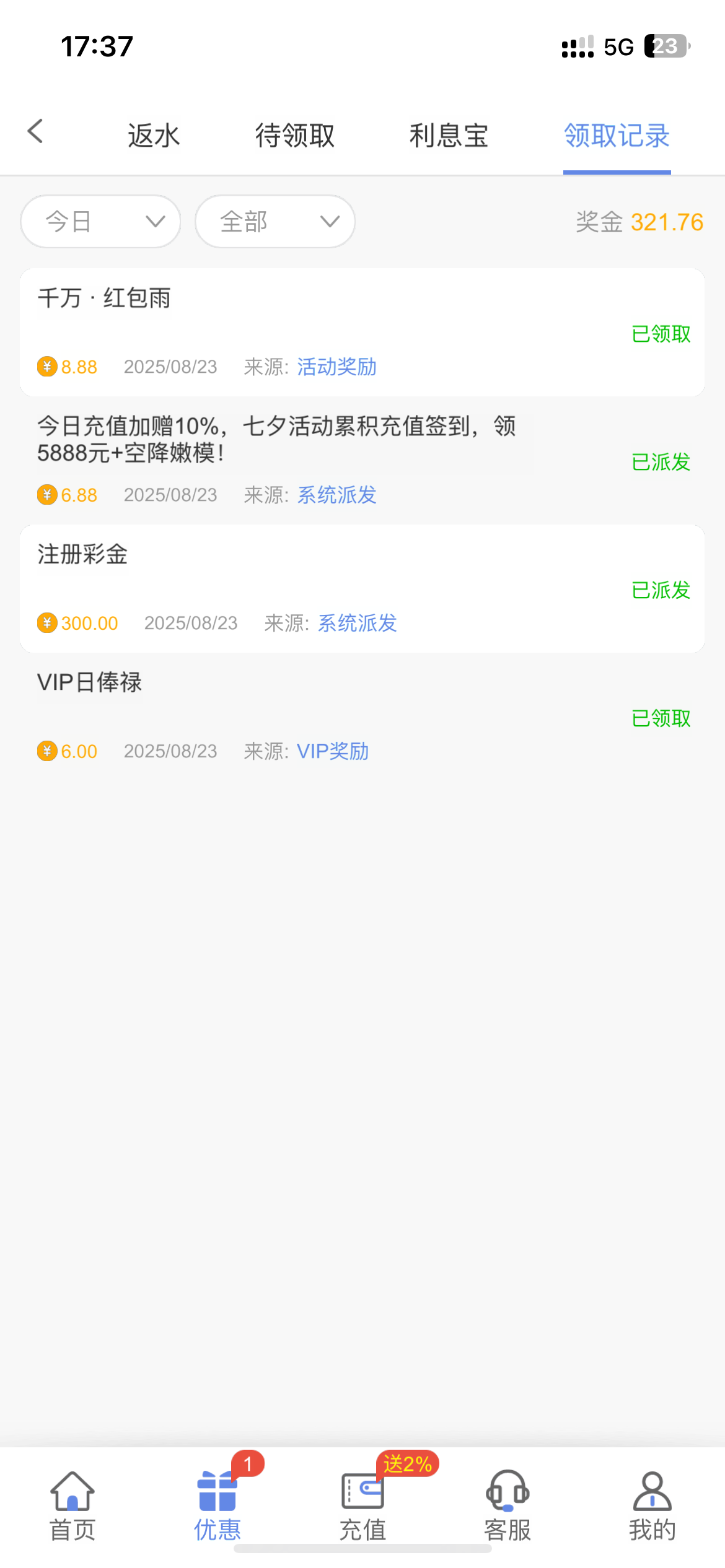 2018站内信彩金,充值送