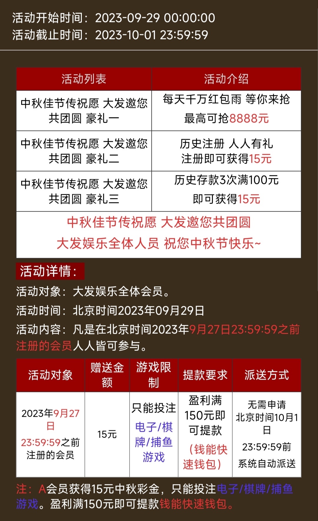 老用户中秋节期间回馈15,详细介绍看活动。