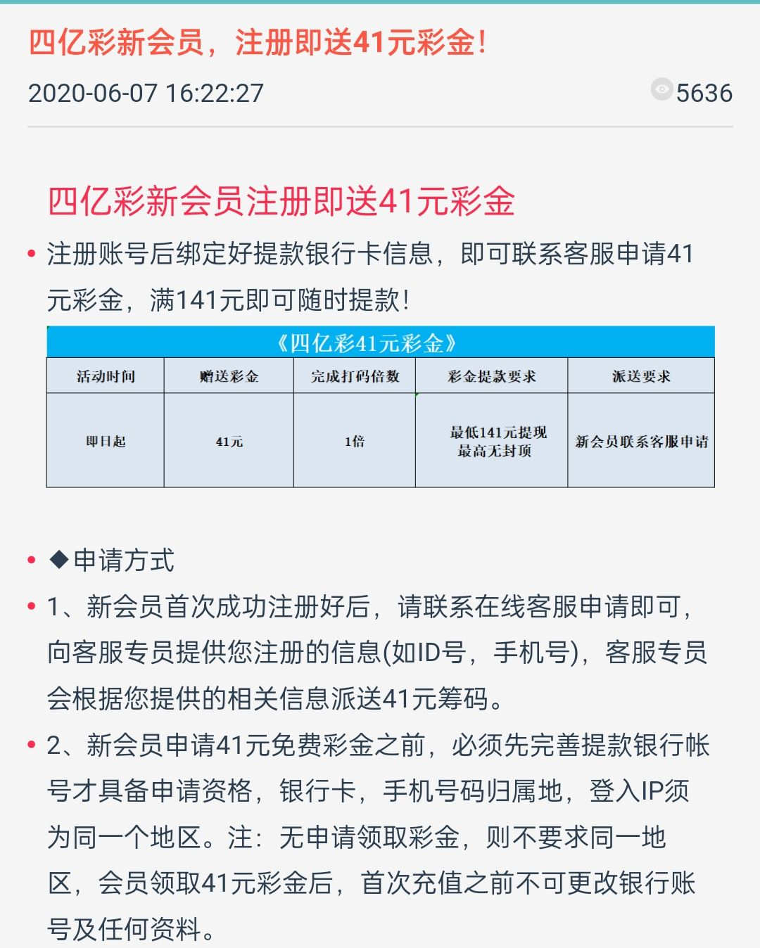 活动:注册绑卡找客服申请注册彩金送41,ip不严,141提