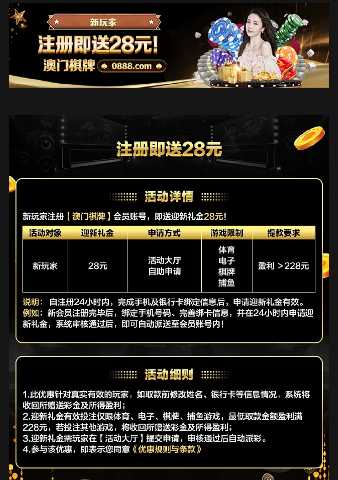 新用户注册完善资料,下方链接申请28彩金。