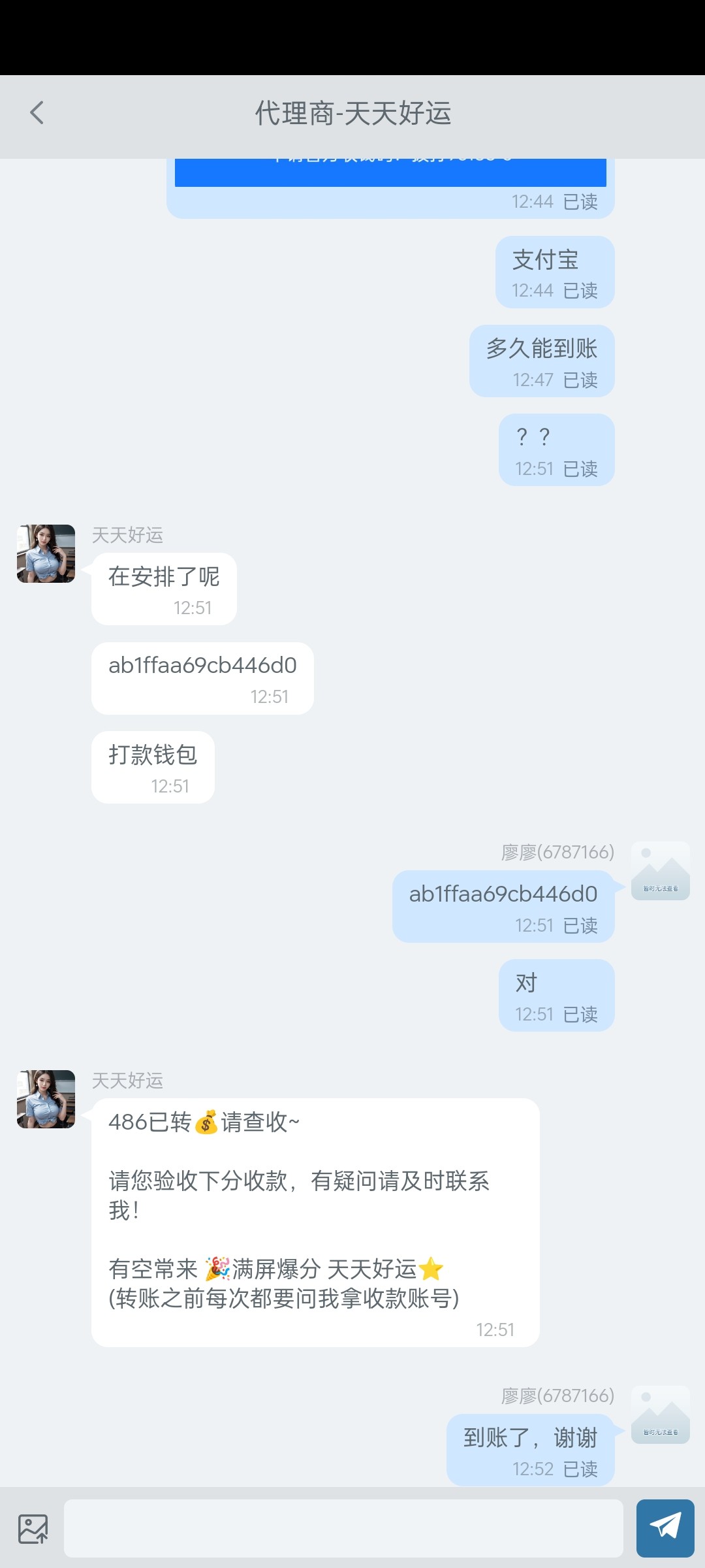 被黑了提现一天都没到账,狗比代理看到不回复
