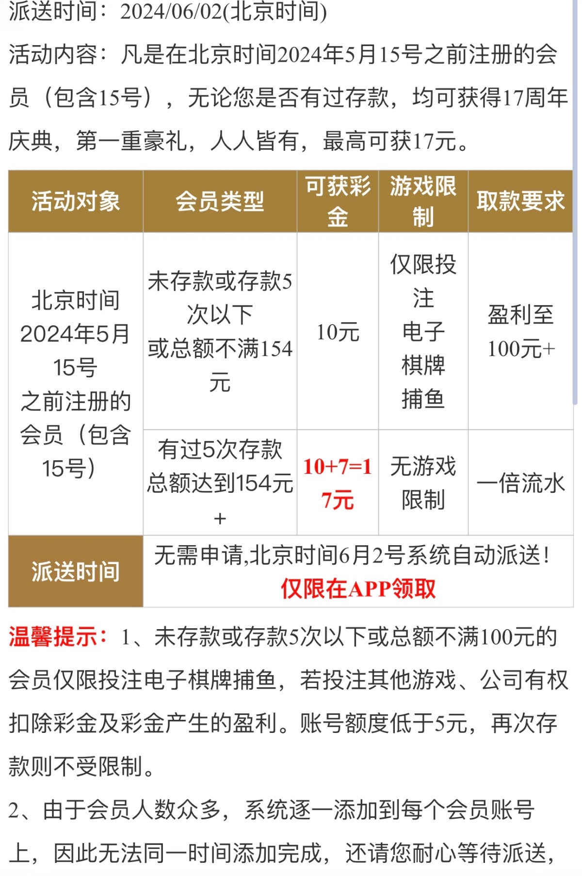 老用户六一当天登录,6月2号回馈彩金具体可以看下图。