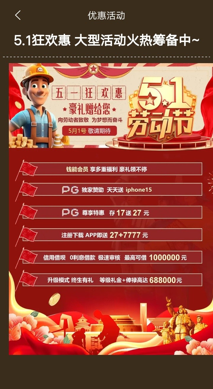精彩系列五一活动送彩金