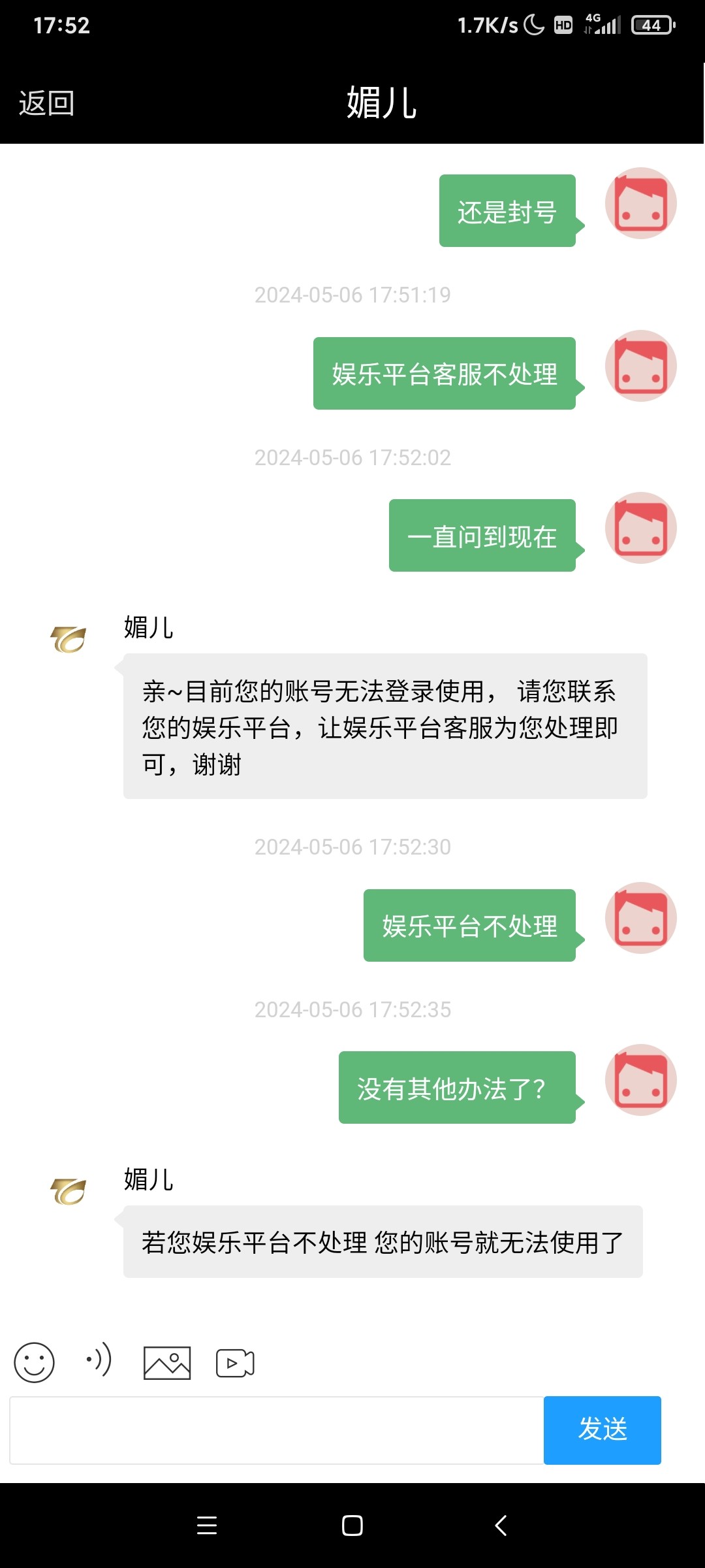 昨天打存送从平台提了500,第二天起来发现封号了,联系平台客服直接关对话,现在从自己大号提的两千多也拿不出来。玩的大号平台也说解决不了