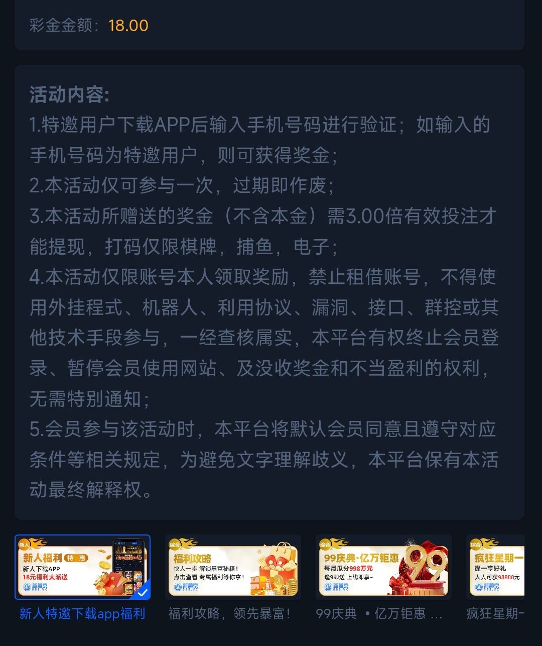 特邀用户下载注册完善资料活动里自助申请18