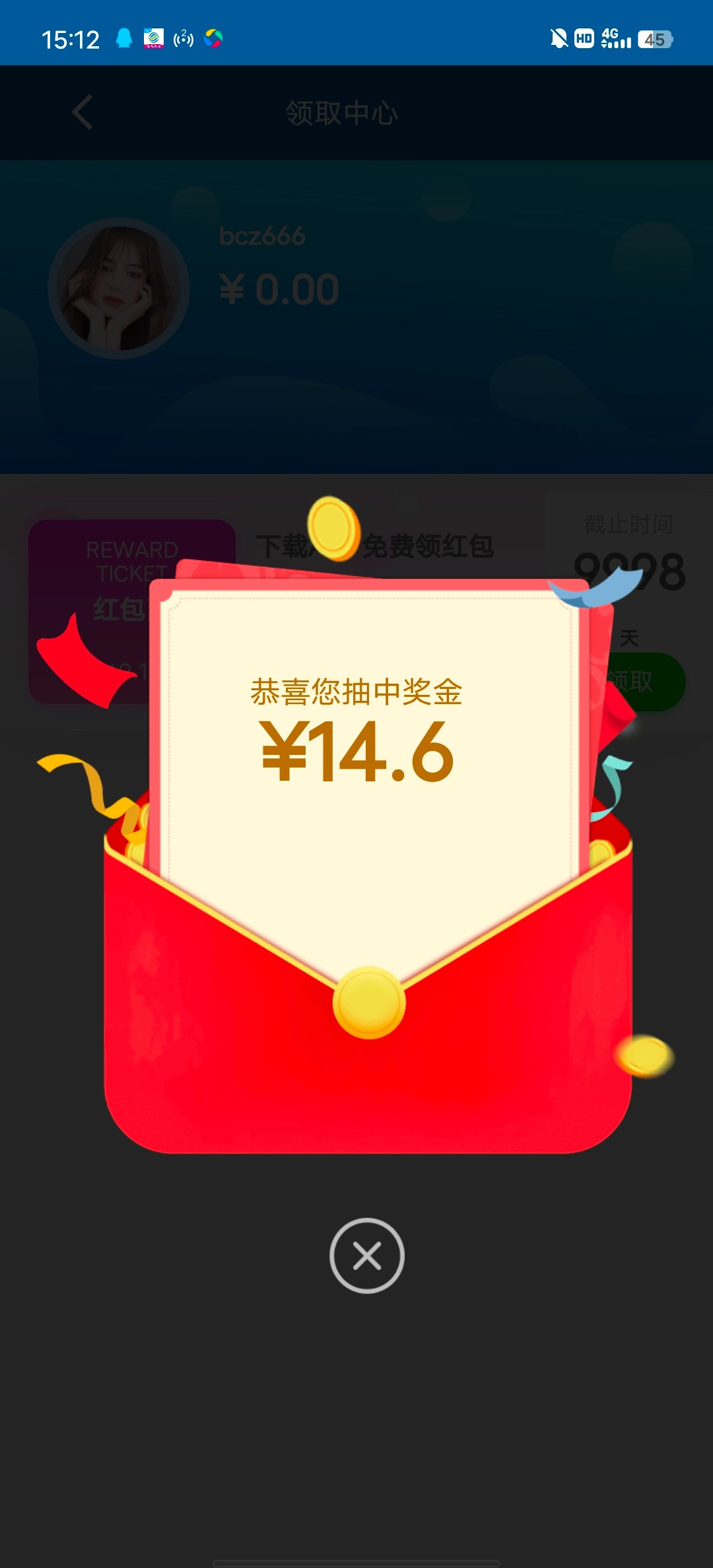 新用户下载APP绑定手机号-会员-奖励中心抢红包红包亲测抢到14具体自测