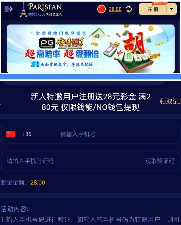 新用户注册绑卡,完善信息。优惠大厅自助输入手机号申请28到88彩金。具体自测!