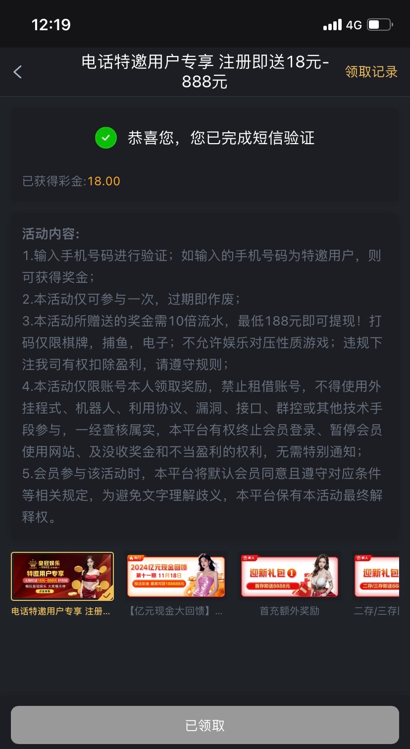 皇冠特邀送18
