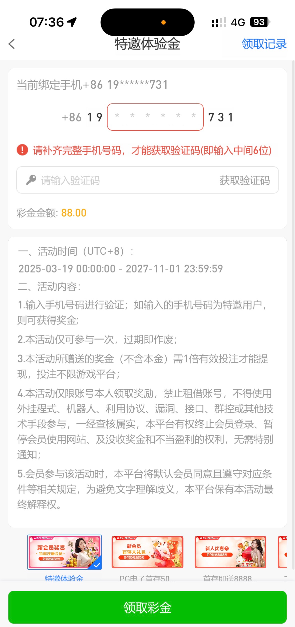 碰瓷去吧 优惠活动绑定手机号是特邀就秒88