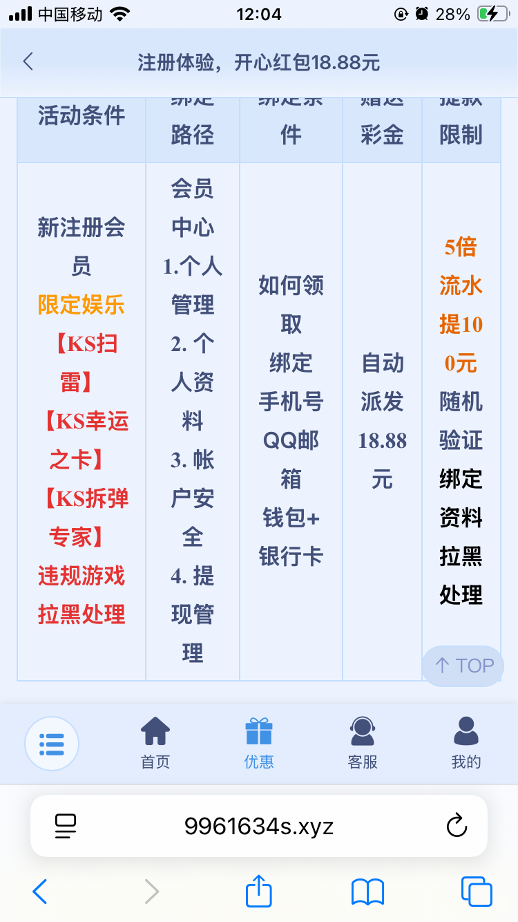 梦想娱乐今天开始送18.88了,不过只能玩ks里的扫雷、幸运之卡和拆弹专家,没有注册的赶紧去。看清活动规则,要绑定手机号和QQ邮箱,银行卡和钱包都要绑定才行。之前送9.9都很多人白嫖成功了,老哥们赶紧行动起来。