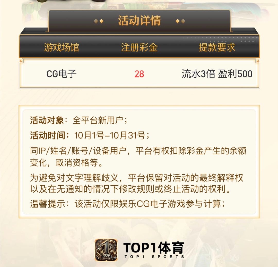 本站声明 1、本帖标题:【TOP1体育】— 注册送28