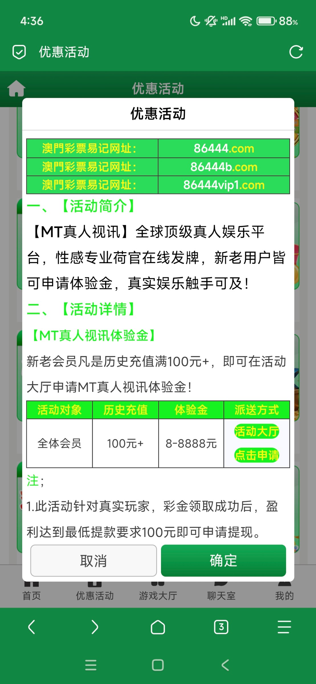 历史充值过一百的可以申请MT真人体验金,IP地址不黑的可以申请新人体验金,喜欢玩彩票的可以玩一百包赔