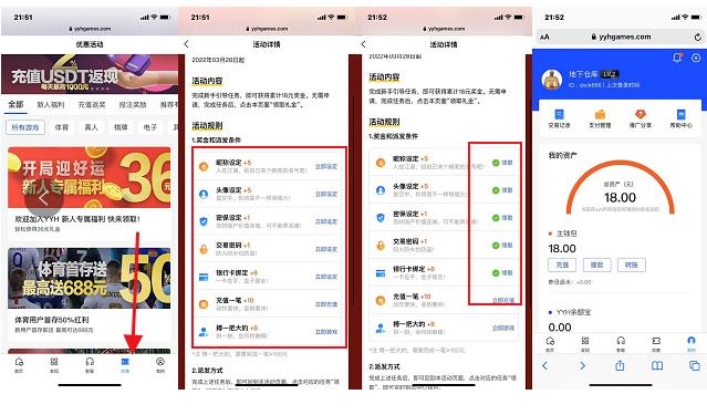 活动规则:新用户点击优惠完成任务秒送18元,一倍流水,充值一笔小额再送10,先白嫖再说。最低100提现,最高不限制