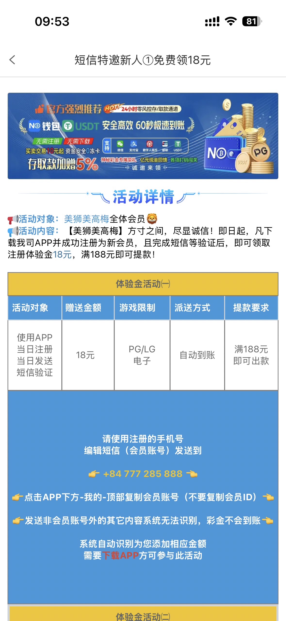 美高梅—短信特邀彩金