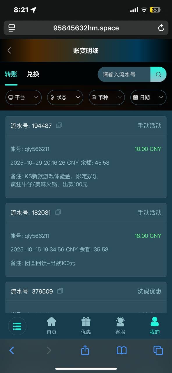 有个锤子用,送了几次只能玩那几个垃圾sK,最后流水打码还差3,4百,反水还只能打那几个垃圾,没敢再充值,怕充值了还要继续打那几个垃圾游戏,一点水没有,这垃圾平台只吃不吐,送的彩金也只能玩那几个垃圾游戏,游戏从来都没有高过送的彩金