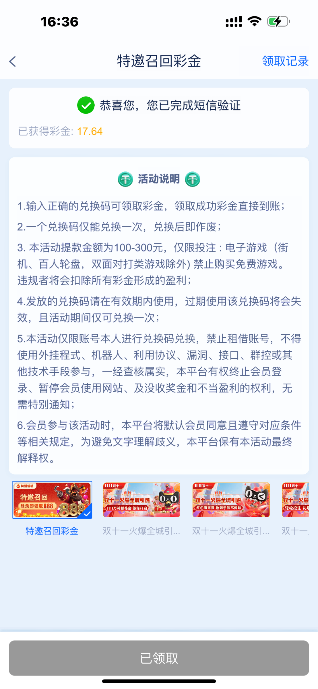 能收到验证码就是特邀
