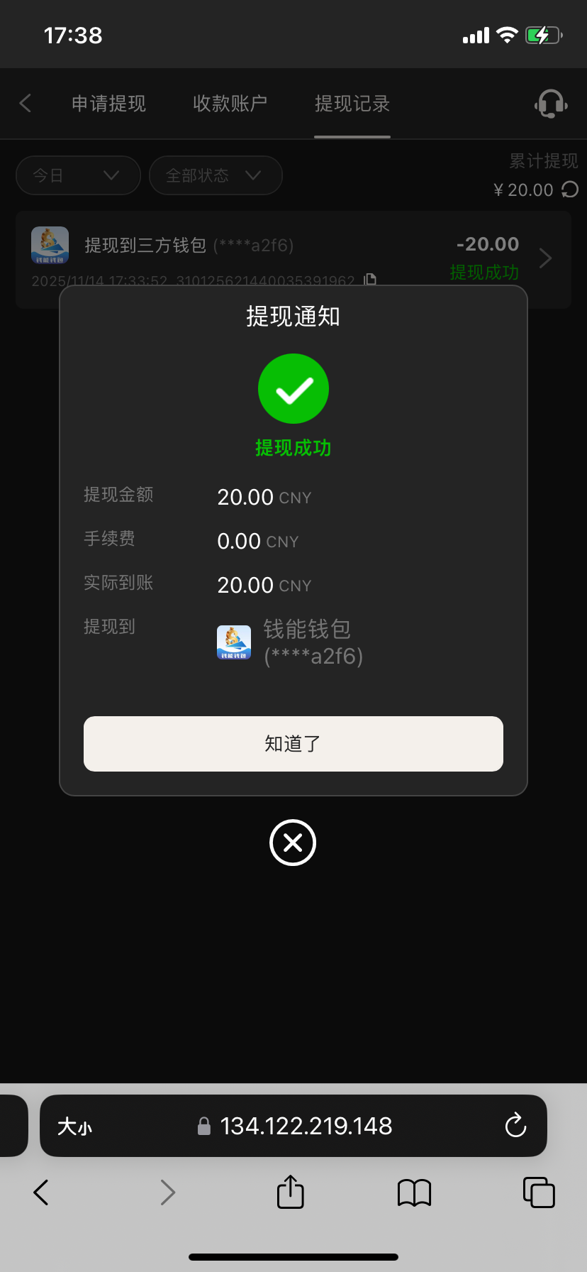 9块钱打到26,打不动了,剩20提走到账