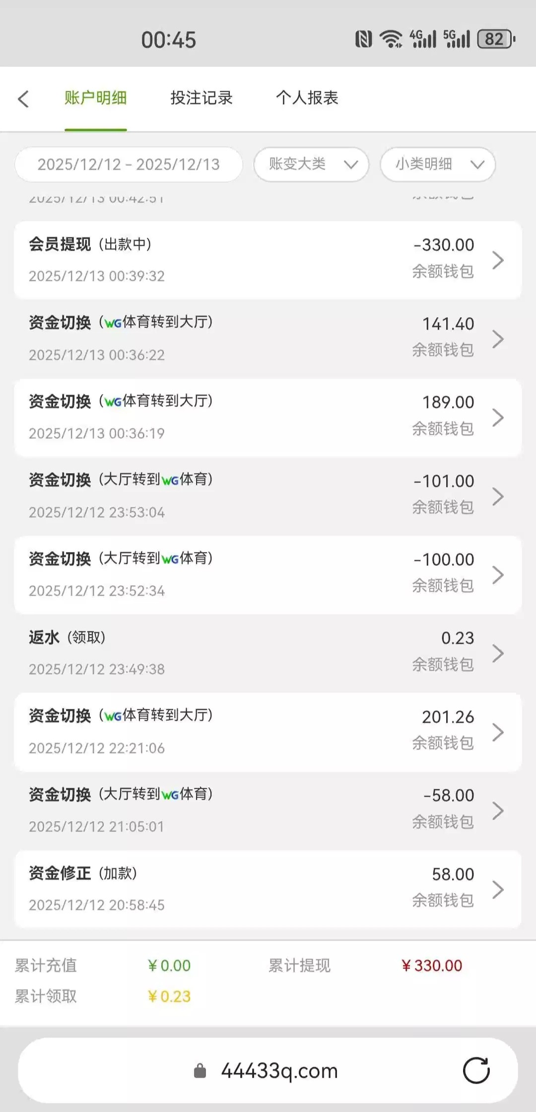 我之前注册过一直没充值,昨天接到电话说送回归彩金,找客服领了58。只能玩体育,得吃330 44433.com