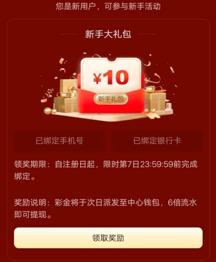 新用户注册 绑手机号/银行卡