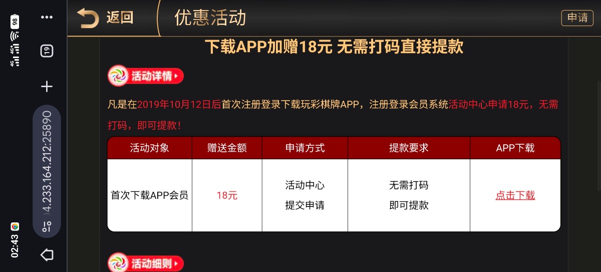 下载注册账号自助申请 新人38彩金和app18彩金 限制出款 自测 查ip