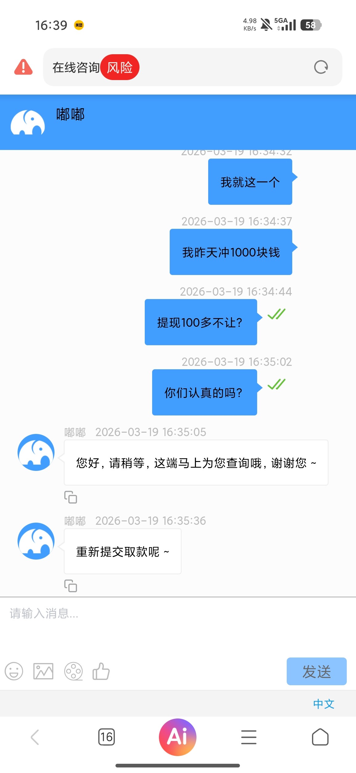 这死客服变脸真快.哭笑不得