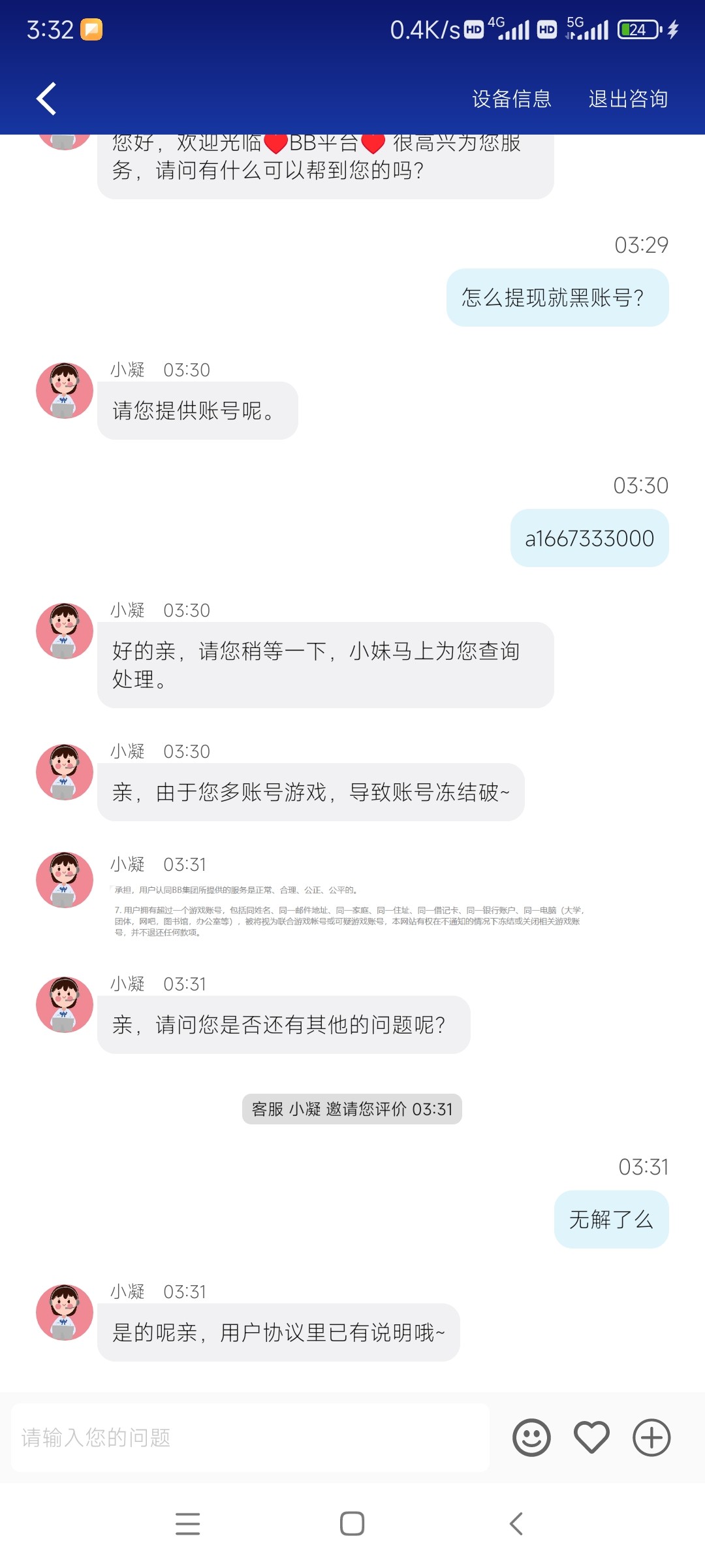 这bb体育真恶心人提现等了快四个小时突然弹出账号密码错误问客服就说账号存在异常还要户口本照片有毛病吧 有被恶心到