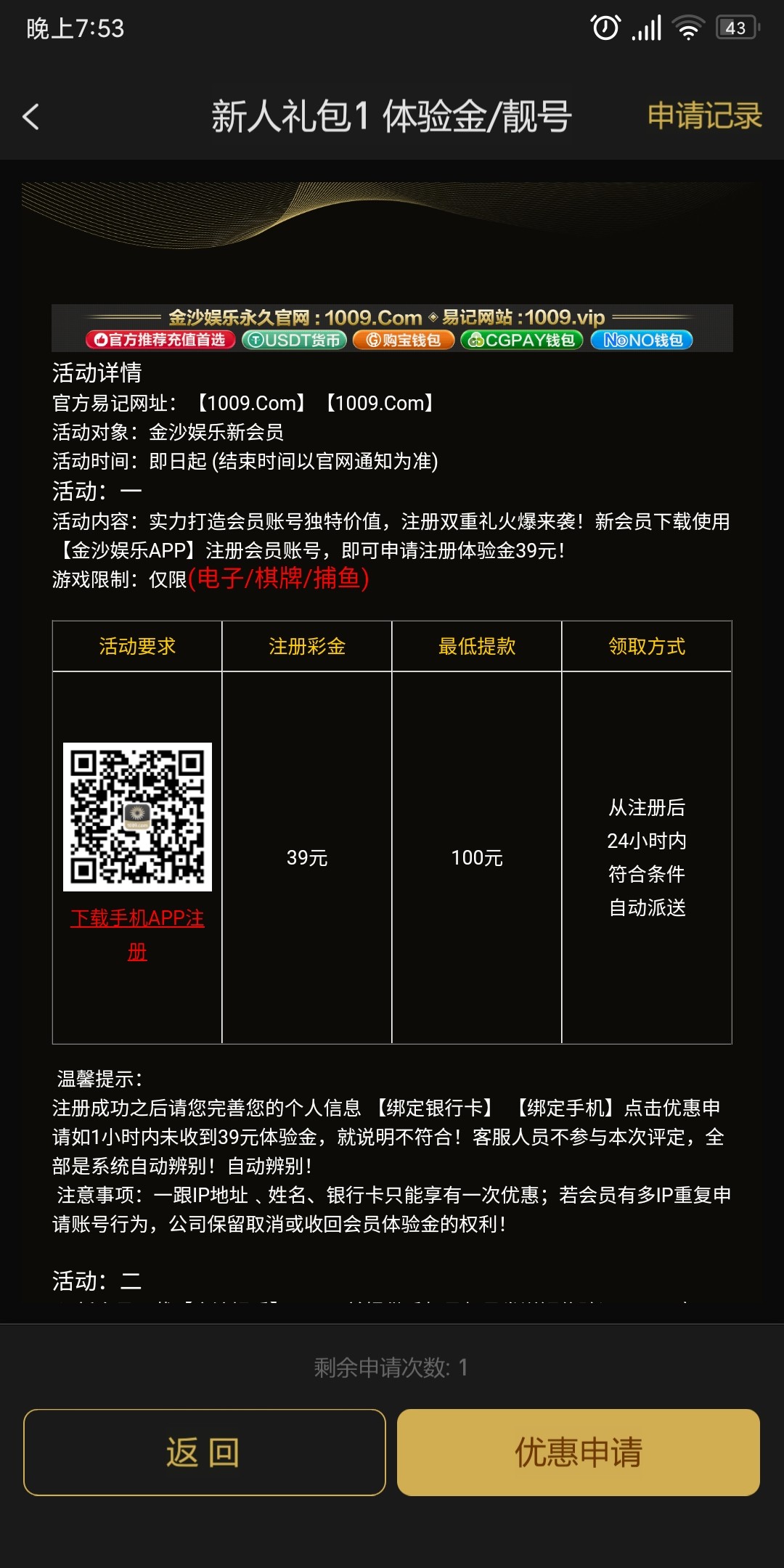 以前注册过的也可以申请一下 我的刚刚到账了