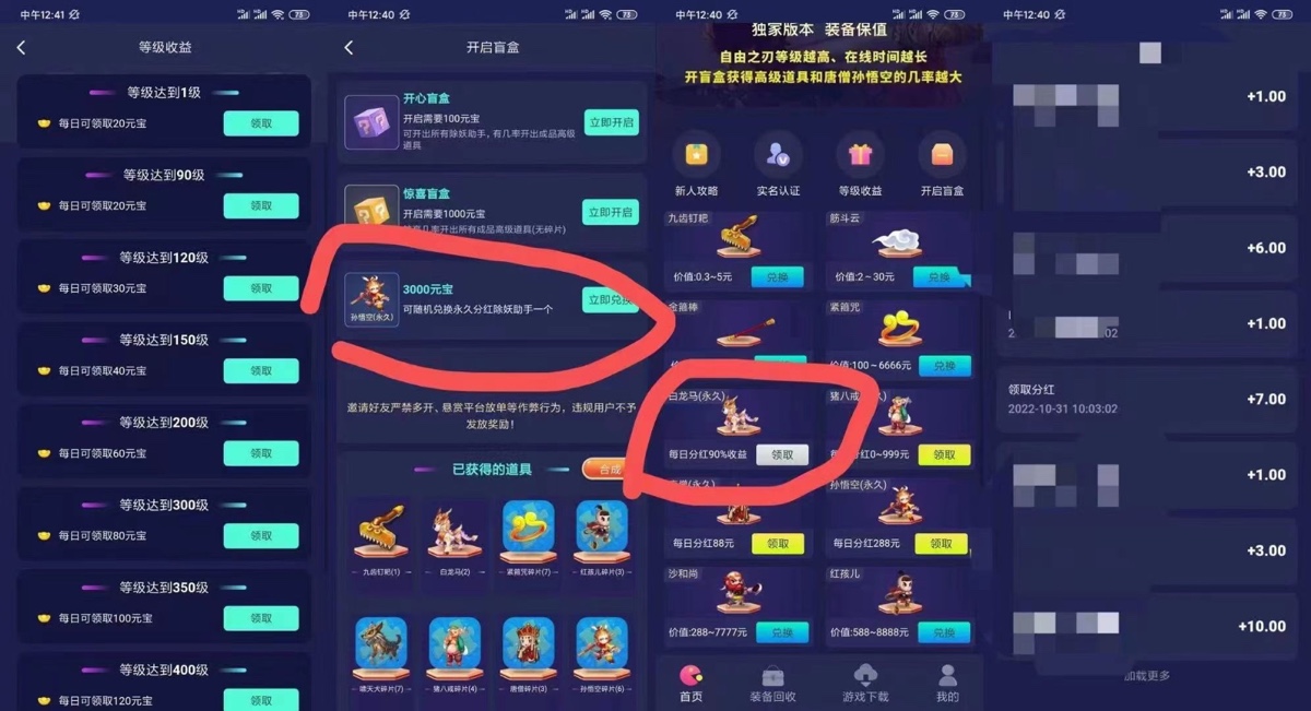 3000开盲盒必中白龙马以上,白龙马现在一天是6-7块 ,可以叠加